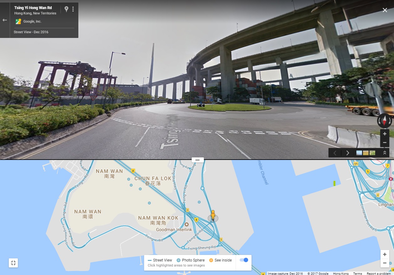 1. From Kwai Tsing Road to Tsing Yi Road. You will see on your left hand side the Rambler Garden Hotel, Mexan Harbour Hotel and Rambler Oasis Hotel.